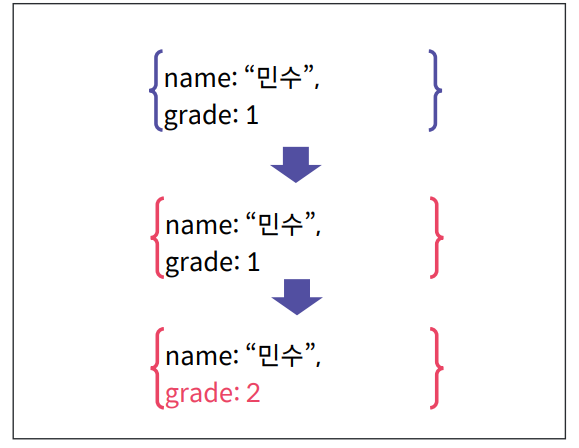- user의 grade가 변경되었지만 user의 내용을 담는 object 자체가 변경된 것은 아니다.